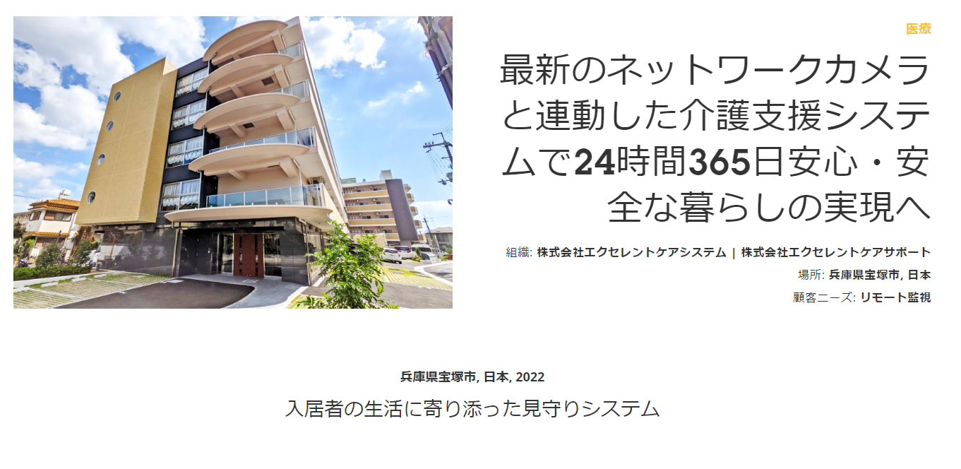 アクシスコミュニケーションズ株式会社様のWebサイトにて、弊社のグループ会社である(株)エクセレントケアシステムが運営する「介護付き有料老人ホーム エクセレント宝塚ガーデンヒルズ(2021年8月オープン)」へのIoTデバイスを用いた介護支援システムの導入事例が紹介されました。