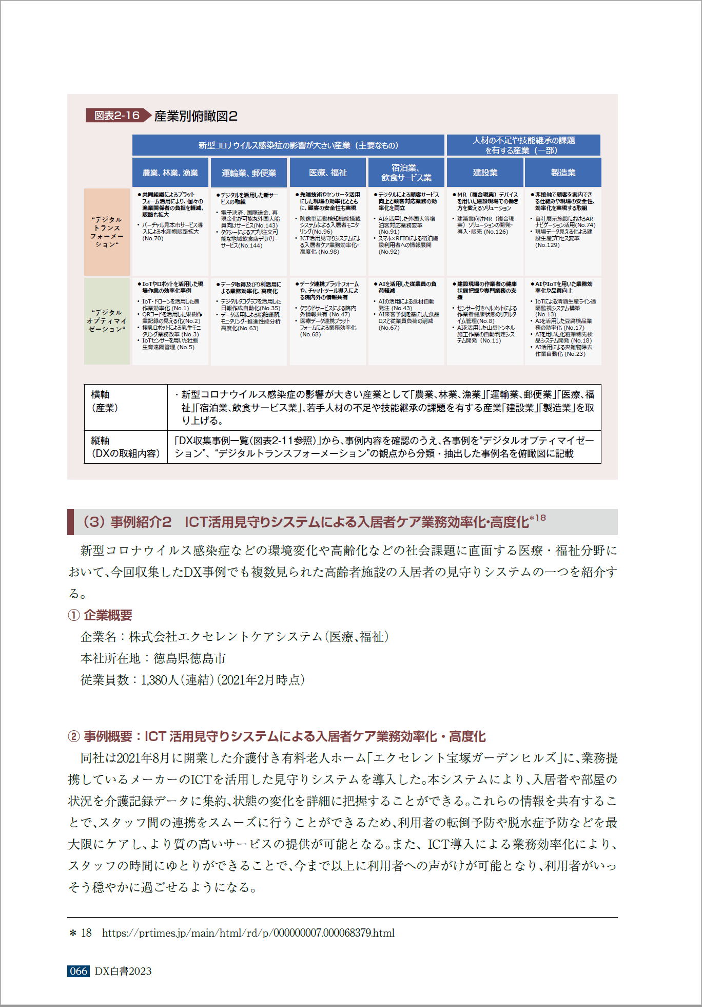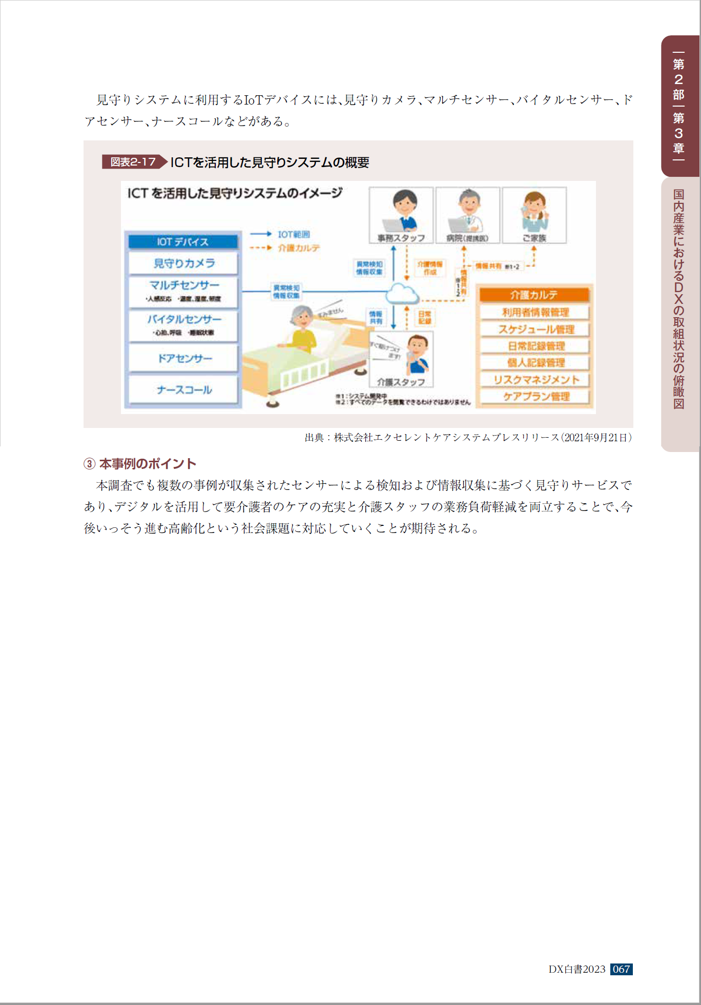 独立行政法人情報処理推進機構(IPA)がまとめる「DX白書2023」に、弊社が導入を行ったICTを活用した見守りシステムの事例が掲載されました。